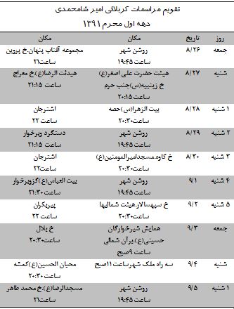 شروع مراسم جمعه 26 آبان(روز اول محرم) از ساعت 16